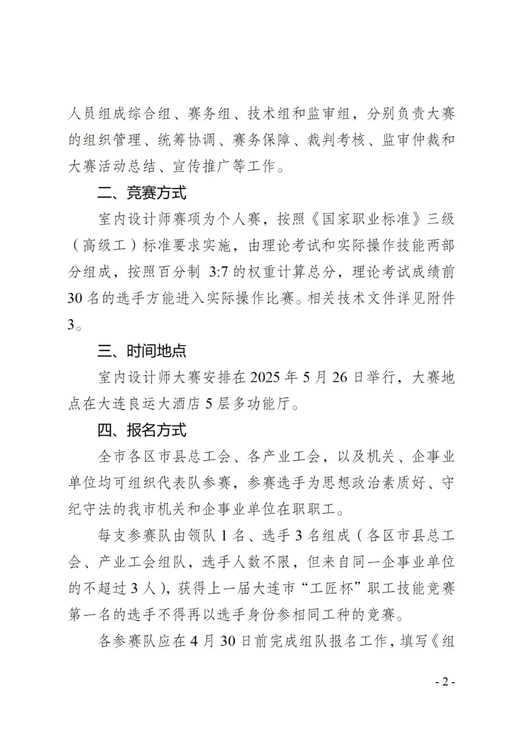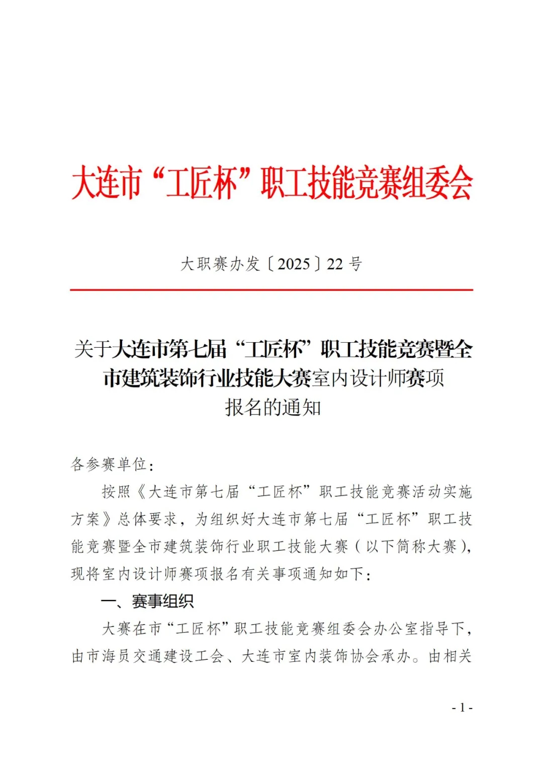 • 【大赛通知】关于大连市第七届“工匠杯”室内设计师赛项的通知