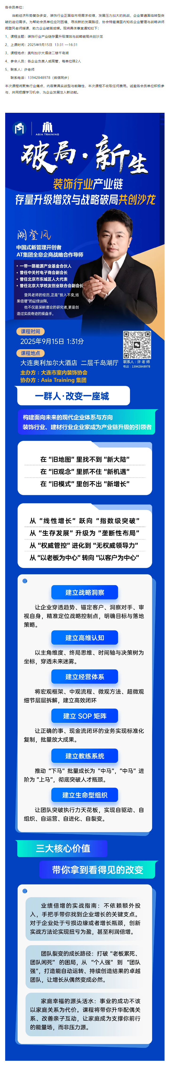 • 【行业培训】关于举办装饰行业战略破局专题沙龙的通知