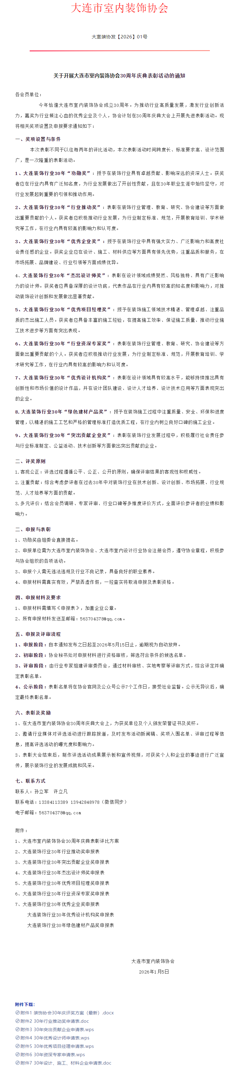 • 【通知】关于开展大连市室内装饰协会30周年庆典表彰活动的通知